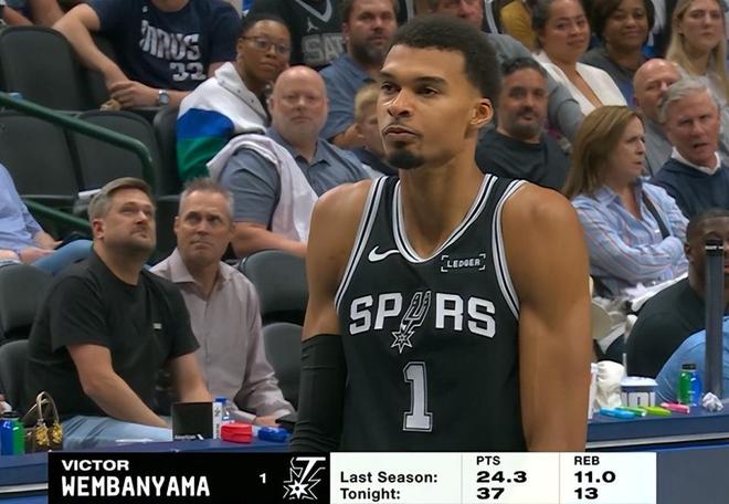 而且不光是這樣,獨(dú)行俠還有新科狀元秀,以防守著稱的弗拉格,結(jié)果這三個(gè)人在文班面前排隊(duì)被他虐。關(guān)鍵是文班強(qiáng)就強(qiáng)在每一節(jié)都穩(wěn)定輸出,第1節(jié)11分,第2節(jié)10分,第3節(jié)10分,第4節(jié)9分,這誰(shuí)防得住他?沒(méi)人防得住,而且誰(shuí)單打他也打不了。