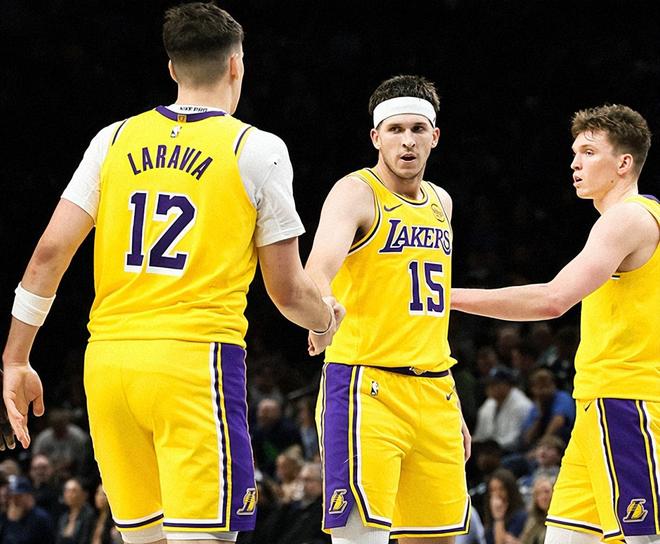 里夫斯?fàn)恐品朗兀吮娙耸安窕鹧娓?,吃餅吃到飽!比如艾頓,拿到17分+10籃板+3助攻+1搶斷+1蓋帽,完爆戈貝爾,又硬又香;再比如克內(nèi)克特,獨(dú)砍15分,扮演板凳奇兵;還有八村塁和范德彪,合砍20分+17籃板撐起內(nèi)線!拉拉維亞也突然覺(jué)醒,打出湖人生涯最強(qiáng)一戰(zhàn)!拉拉維亞出戰(zhàn)37分鐘,11投10中(三分球6中5),罰球5中2,砍下27分+8籃板+2助攻+1搶斷+1蓋帽的全面數(shù)據(jù)。據(jù)統(tǒng)計(jì),拉拉維亞是湖人隊(duì)史自加索爾之后首位以90%以上命中率轟下25分的球員。賽后,里夫斯直言:這是拉拉維亞進(jìn)入NBA以來(lái)最厲害的一戰(zhàn);雷迪克也把話挑明:這場(chǎng)比賽將成為拉拉維亞生涯的新標(biāo)桿。